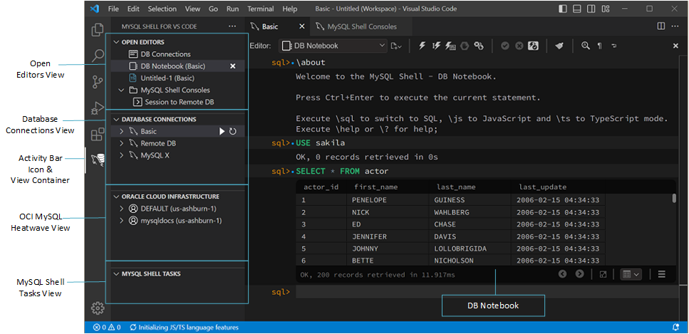 MySQL Shell for VS Code  /  入门  /  MySQL Shell for VS Code 组件